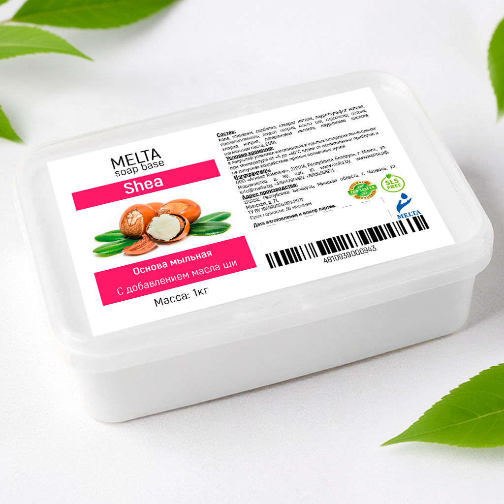 Мыльная основа с маслом ши бренда MELTA – это идеальный выбор для людей увлекающихся творчеством и рукоделием. И совсем не важно, опытный Вы мыловар или новичок, взрослый человек или ребенок! С этой основой Ваша фантазия будет безграничной! Изготовлена из высококачественных компонентов, что наделяет ее рядом преимуществ: она отлично пенится, не потеет и не подвержена усушке. Благодаря наличию в составе глицерина не крошится при нарезке. Хорошо принимает всевозможные добавки, что позволит Вам создавать уникальные мыльные композиции. Состав без SLS безопасен для всех типов кожи, поэтому Вы можете быть спокойны при создании мыла ручной работы с детьми. Масло ши (карите) в составе благоприятно воздействует на кожу, питает и восстанавливает поврежденные участки. Подходит для пипеточной заливки. В нашем магазине всегда в наличии фасовки по 0,5 кг, 1кг, 10 и 15 кг. Произведено в Беларуси. Соответствует всем стандартам качества.